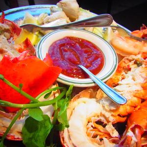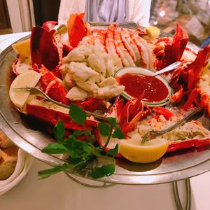 夫婦+娘2人で2名分のコースのオーダーをしました。前菜だけでもロブスター、エビ、蟹などけっこうな量がありました。