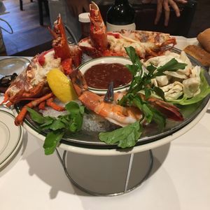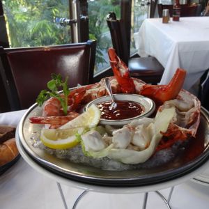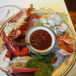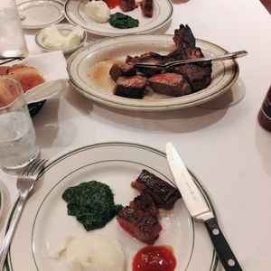 前菜はエビとカニの盛り合わせ。なかなかのボリューム。その後マッシュポテトとほうれん草のクリーム煮?のようなものが大量に出てきて、もうお腹いっぱいです。その後アツアツのTボーンステーキがジュウジュウと音を立てながら出てきました。すでにお腹いっぱいでしたが、美味しかったので少しいただきました。骨の周りのお肉が特に美味でした!その後、ケーキの盛り合わせ。こちらも美味しかったです!