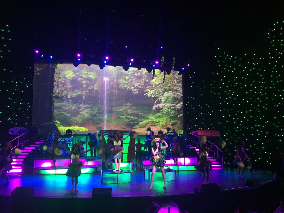 ハワイに着いて一日目の夜にショーを見にいきました!ビュッフェスタイルの食事の時から、もうすでにおもてなしは始まっていて、スタッフの方々はフレンドリーにおもてなしをしてくれますが、それだけでなく、フラを踊りながらその場を盛り上げてくれて、食事も美味しくいただきました!食事が終わったらショーの始まり!モノマネはめちゃくちゃ似ていて、特にマイケルジャクソン!すごかったです!その間にフラダンサーのパフォーマンスもたくさんあって、すごく引きこまれていきました!タイマツを使ったパフォーマンスは感動的で見れて良かったです!食事のときからおもてなしをしてくれている方が、ショーに出ていて、フラだけでなく、様々な踊りを行なっていたり、みんなで作り上げている感じが伝わってきてとても素敵な気持ちになりました!ありがとうございました!!
