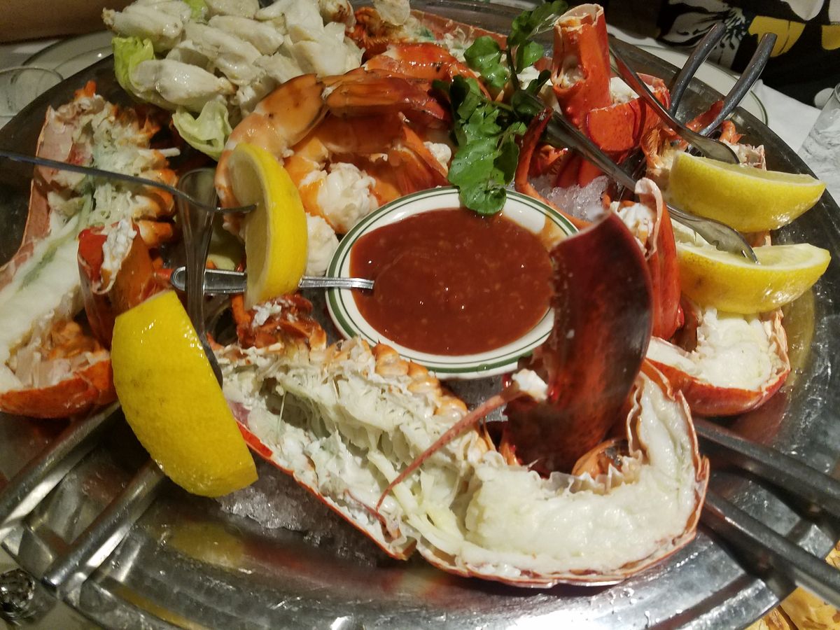 最初にロブスターと蟹の盛り合わせが