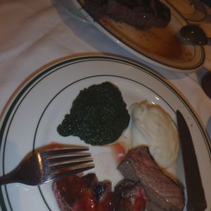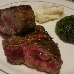 お肉の美味しさはもちろんですが、付け合せのほうれん草とマッシュポテトがとにかく美味しい!