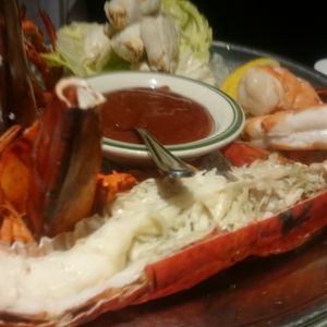 娘と2人で食事に行きました。待たずに席につけるのは予約していて良かったと思います。ただ、席は予約者専用に用意されている場所のようで隔離されている場所みたいでした。味はアパタイザーのロブスターとシュリンプシーフードは冷凍を解凍した感が否めませんでしたが、Tボーンステーキのお肉はとても美味しかったです。