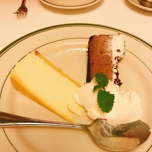 熟成肉、美味しい〜〜!オススメのミディアムでいただきました。デザートは濃厚なチーズケーキ二種類。もうお腹いっぱいです!!
