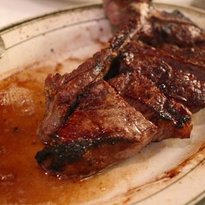 フィレステーキでも十分な量で、リブステーキはその大きさにびっくりしました。リブステーキはやや油が多く若者向きという感じ。フィレステーキでもしっかりとお肉の味がして十分な量でした。前菜はラビオリを注文しました。スープはその日のスープとオニオングラタンスープの二種類を注文。どちらも十分すぎる量、それだけでもおなかいっぱいになります。グラタンスープのチーズが特においしかった。おなかをすかせて行くに限ります。