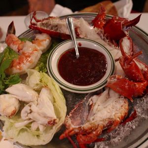 Tボーンステーキとシーフードプラッター、デザートまで美味しくいただけました。
