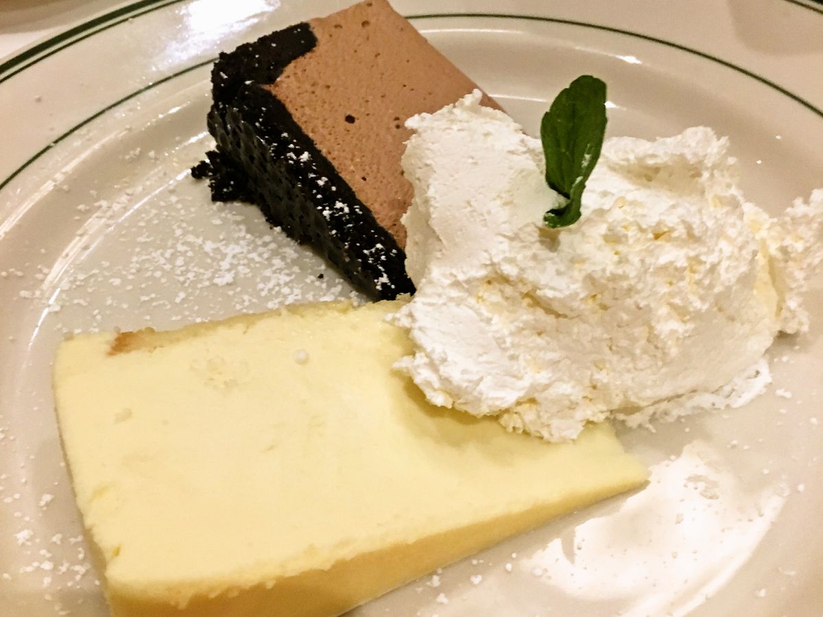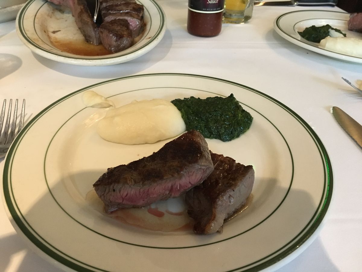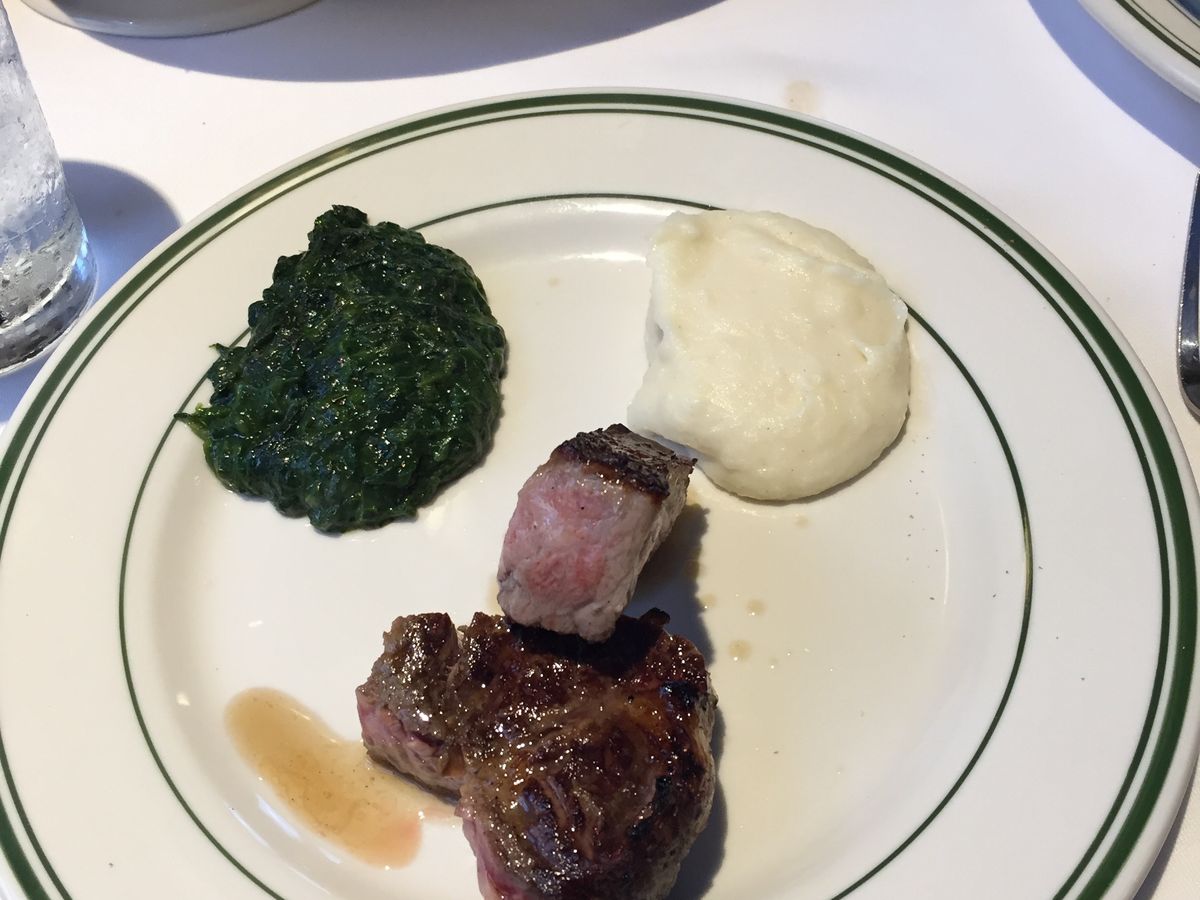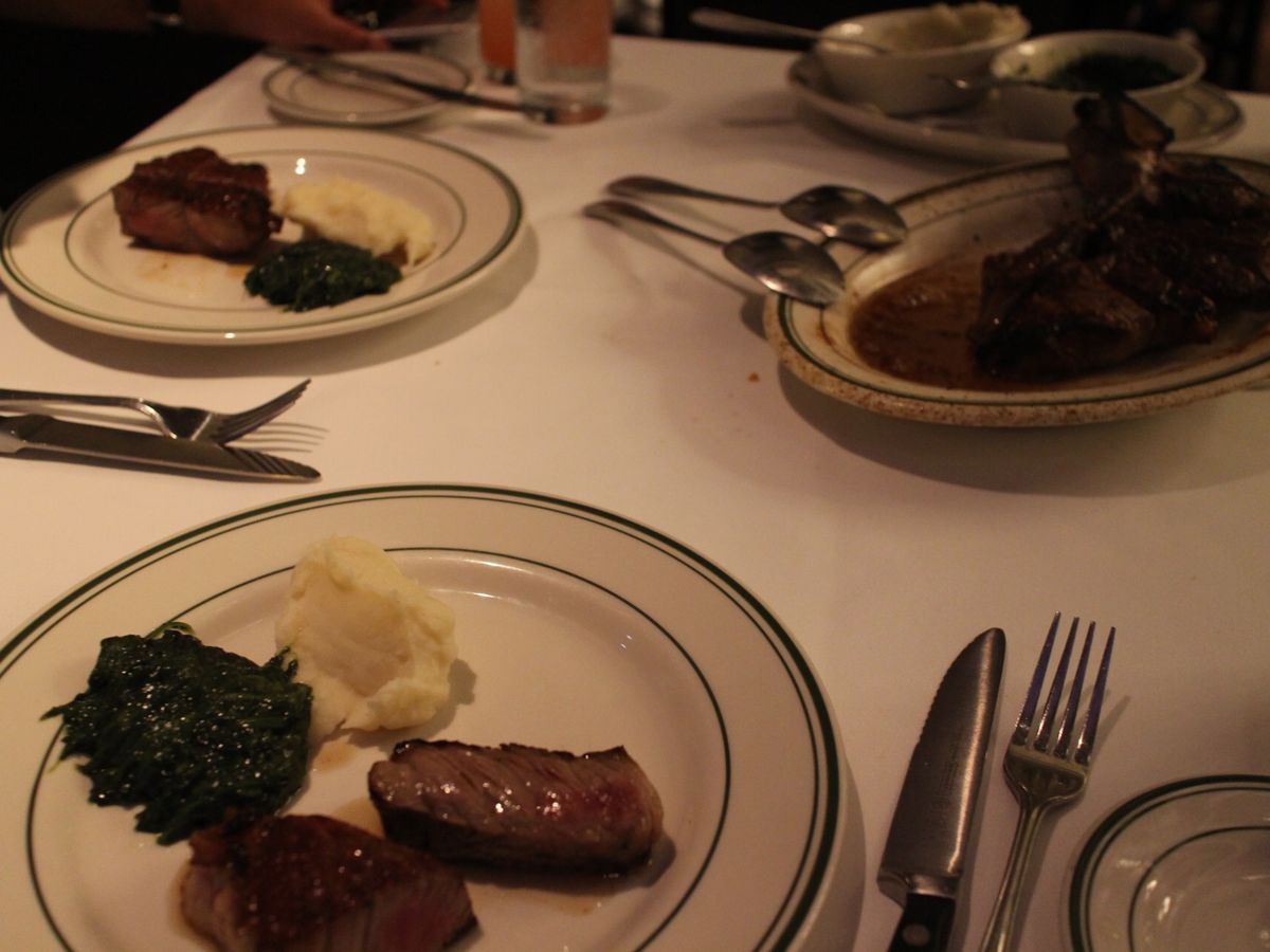 「No!No!」といったら、え?違う?という感じであわてて引っ込めたのち、私たちのTボーンステーキがきました。お肉は確かに上質なものでした。付け合せのほうれん草のペーストもマッシュポテトもおいしかったです。おなかいっぱいで、最後のデザートはひとくちふたくちしか食べられませんでした。1回は行ってみるといいかと思います。