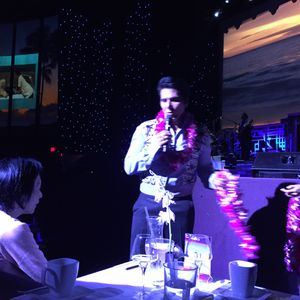 大晦日、ハワイに到着した日に60代後半の母と参加しました。ロイヤル・ハワイアン・センター4階にあり、アクセスもすごくいいです。宿泊先から、歩いていくことができました。VIP専用の入口から入らせていただいた時点で気分が盛りあがります。ウェルカムマイタイもいただきました。ノンアルコールマイタイも、もちろん用意してくださいます。日本語を話すスタッフの方もいて安心ですよ。舞台すぐ近くに用意された場所でおいしくコースディナーをいただいたあとショーがスタートです。「本場ラスベガス発、エンターテインメント集団「レジェンド・イン・コンサート」と」このページにも書かれていたのでかなり楽しみにしていました。フラダンスのショーと、モノマネのショーの構成がすばらしいかったです。私が参加した日はセリーヌ・ディオン、マイケル・ジャクソン、エルビス・プレスリーが登場。モノマネと書くのが申し訳ないくらいそっくりです。本人ライブのように本気で楽しみました。マイケル・ジャクソン蘇ったの?と思ったくらいです。「マイケル!」とか叫んでました。セリーヌ・ディオンやプレスリーも動きまで一緒です。フラダンスの方々のダンスも素敵です。様々な種類のフラダンスもたのしめます。フラダンス→モノマネ→フラダンス といったように進められあっという間に時間がすぎました。VIP席はものすごく間近で見られます。ファイヤーダンスも迫力満点です。特別感をもって食事とショーを楽しむことができました。ありがとうございました。当日フラッシュなしのステージ写真OKでたので投稿しますね。
