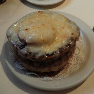 中でもインパクト大だったのがオニオングラタンスープ!運ばれてきて「なんじゃこりゃ~!」「おったまげ~!」状態でした。笑
