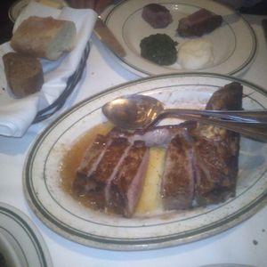 ステーキの種類も当日に選べて、美味しくいただきました。肉は脂身がある方が日本人向けの味だと思います。私は肉が苦手なので、魚料理を注文しました。そちらもシェフのお勧めなどでとても良かったです。日本の方には量が多いので、お腹を空かせていくほうがいいです。食べきれないほどのご馳走でした。