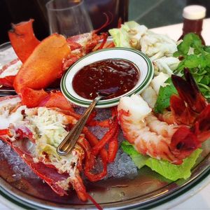 ロブスターは普通の味。付け合せのポテトとほうれん草はかなりしょっぱい。