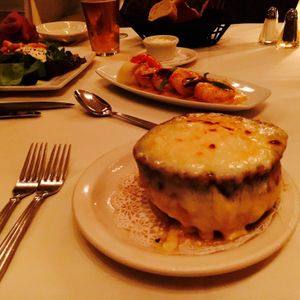 前菜のガーリックシュリンプから始まり、オニオングラタンスープは、感動的な美味しさでした。もちろん、メインのお肉に関しても、お味もボリュームも大満足。付け合せのマッシュポテトも絶品。
