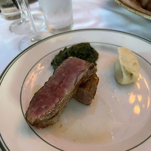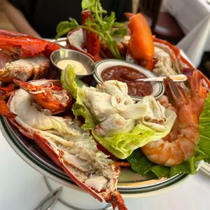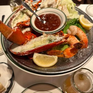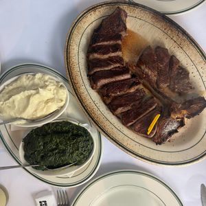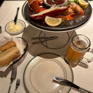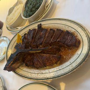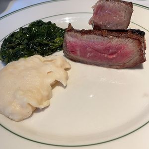 円安で厳しかったですが、Tボーンステーキは絶品で、付け合わせのほうれん草ソテーとマッシュドポテトもおいしかったです。最初に来るカニ、オマール海老、エビも見た目が華やかで豪華でした。