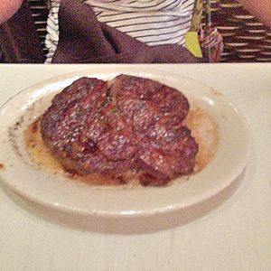 TVで見てから、期待して楽しみにして行きましたが、予想よりもお肉は小さく味も値段に対して普通。コースじゃなければ違うのかな?付け合わせの量は多いのですが、ソテーの味付けがしょっぱかったです。マッシュポテトは美味しかった。混んでいて予約は必須ですが日本人ばかりで、店員さんも忙しそうに動いていて、ファミレス感覚でした。次は行かないかなぁと思っています。