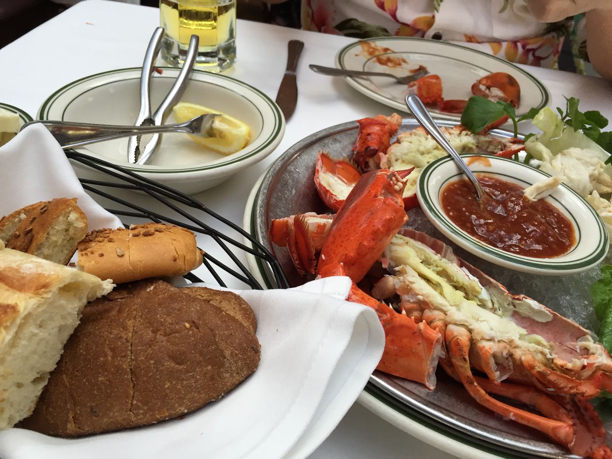 入店時に大皿で巨大なTボーンが運ばれていたので、まさかあれが来るの⁉️と驚いていましたが、実際には2人前の小さめなTボーンでした。最初のを見てしまったのでインパクトはなかったけれど、シンプルな味付けで美味しかったです。せっかくの熟成肉、個人的にはミディアムレアかレアくらいでジューシーさを味わうと良いと思います。前菜のシーフードプレートは見た目にも豪華で、次に来るメインのワクワク感をそそり良かったです。チリソースではなくレモンのみがオススメです。あと、同行者が意外に気に入ったのが焼きたてのパン!3種類フワフワ熱々で、旨味のあるバターと一緒に食べまくっていました。デザートはアメリカンサイズなチーズケーキとチョコレートケーキの盛り合わせ。胃が小さく完食はできなかったけれど、量は日本人にも適量だったかと思います。ただ、金額は内容的にはお高いかな。食後の飲み物以外は別料金。グラスワインのチョイスもあったので、ロブスターに、ステーキに、とついつい進んでしまいました。なので、この金額ならディナーらしい雰囲気がプラスされていたらな、と思いました。
