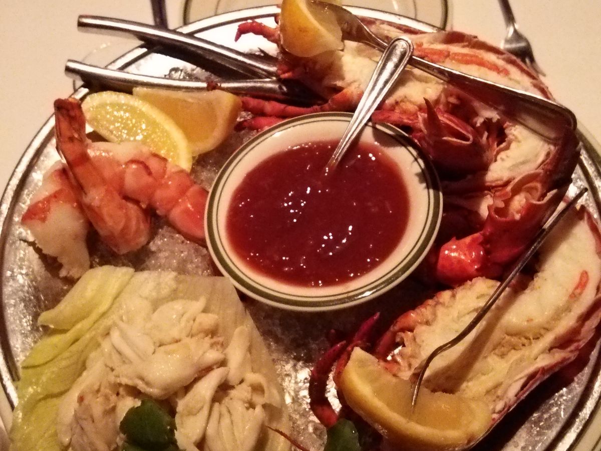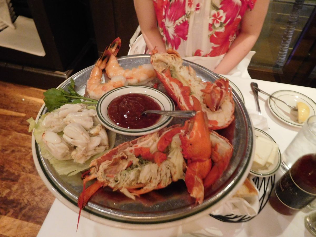 最初にでてきたシーフードのプレートには、エビ、カニ、ロブスターがのっており、とても美味しかったです!お目当のステーキも期待通り美味しくて、お腹いっぱいになり、とても満足することができました^ ^デザートのケーキも美味しかったです。スタッフの方も感じが良く、気持ちよく食事をすることができました。