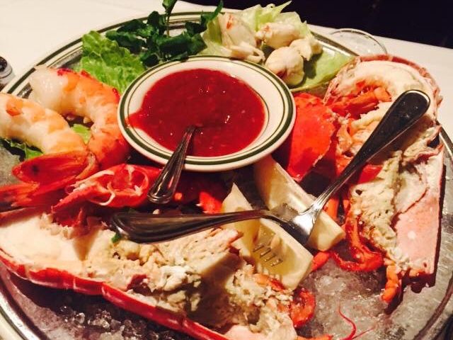 まず最初にすぐシーフードプラッターが来ました。ロブスターはかなり美味しかったですが、他は普通。ソースも付いていますが、あまり美味しくなかったです。レモンを搾って食べたらウマイ! シーフードは普通。