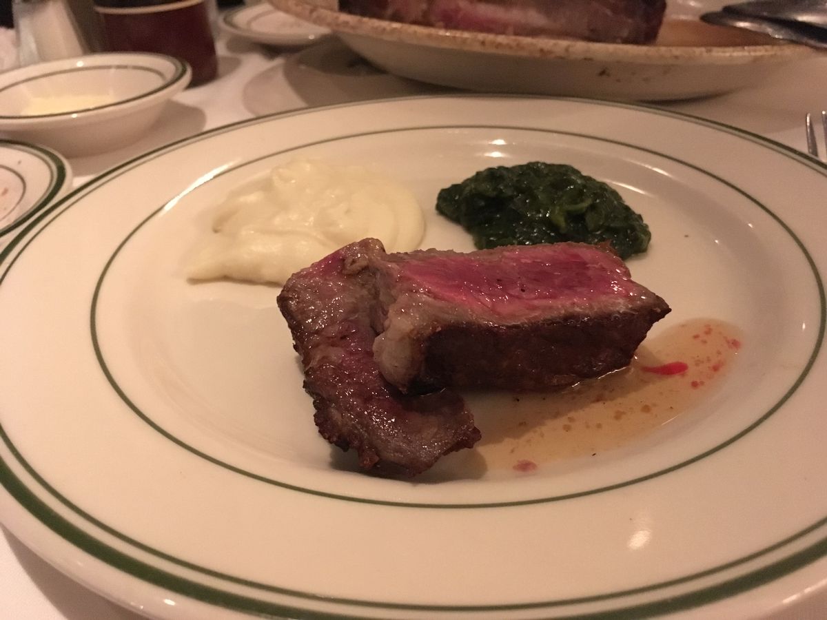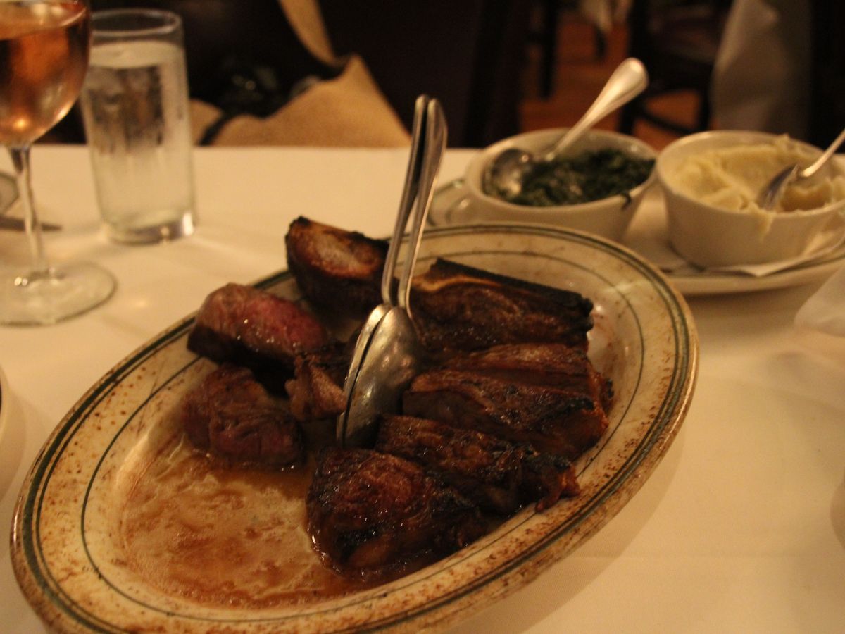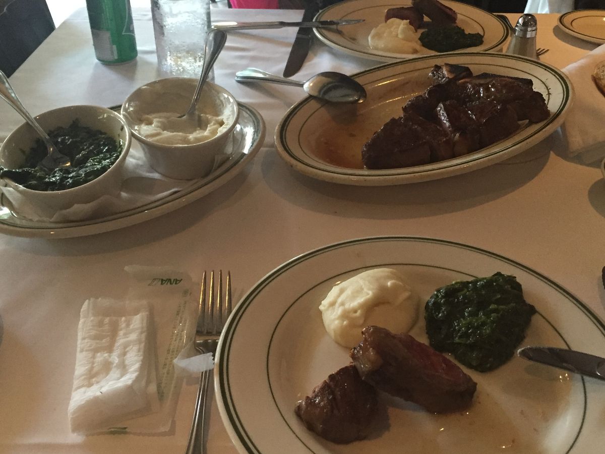 以前、知人が行き予約じゃなかったため入れなかったと聞きこちらを見つけ予約しました。テレビでよく見かけるお店だったので、どうしてもあの骨付きのお肉が食べたいと思っていました。やはり、混雑してましたが、予約だったので少し待って入れました。ただ、受付の女性が混雑のせいか、みんなムッとして感じ悪く見えたのが、少しマイナスでしたが、、味は、前菜のロブスター、シュリンプ、ほうれん草ソテー、マッシュポテト美味しかったです。
