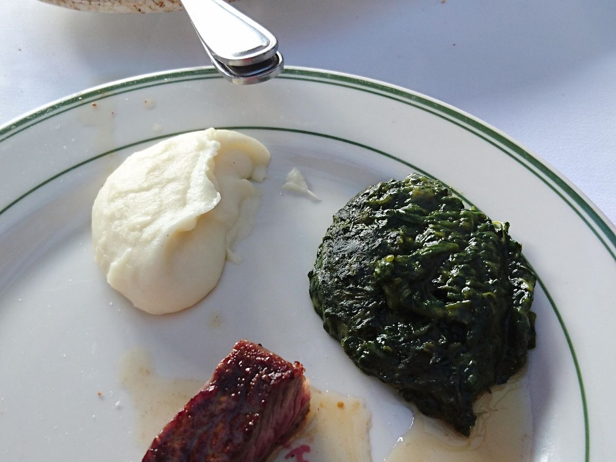 お肉はとても柔らかく美味しかったですが、素材の味を生かすためか、ほぼ味はありません。ステーキソースになれているため、食べている途中ステーキソースが欲しくて欲しくて…言えば醤油をもらえたのかもしれませんが、テーブルにある塩コショウで食べました。付け合わせのほうれん草はあまり美味しくありませんでした。