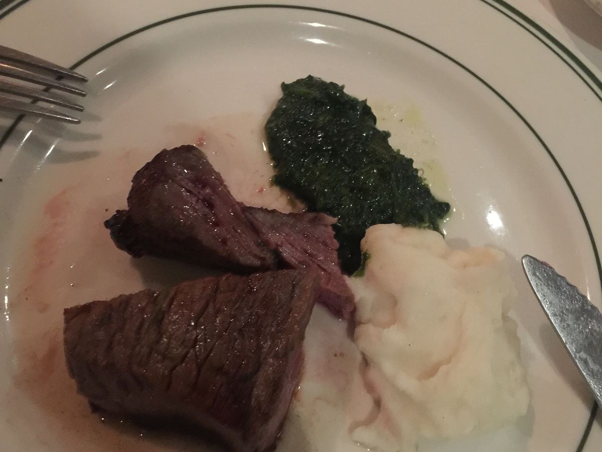お料理はここだけではありませんが、ハワイすべてのお料理が口に合いませんでした。大味と言うのでしょうか。こちらの付け合わせのマッシュポテトとほうれんそうのディップ?みたいなのがあっててんこ盛りに盛られていてぎょっとしました。初めはウェイターさんによそってもらってあとは各々よそっていましたが、とても食べきれる量ではなく、残そうと思っていたらウェイターさんに無理やりよそわれて食べろ食べろとせがまれておりました。(連れの男だけw)おなか一杯過ぎてきつかったです。お肉はかなり油がすごかったな、、味も。。。