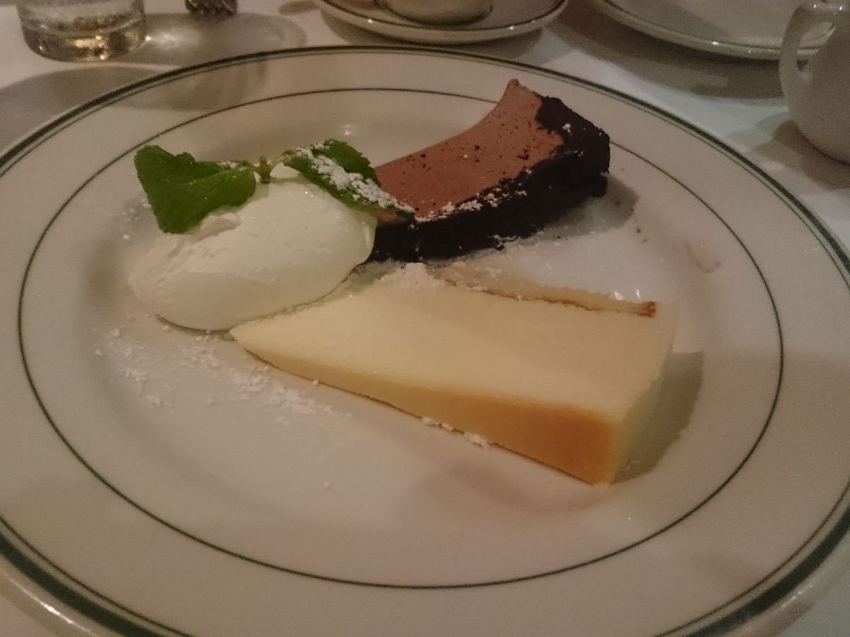 最後はデザート。チーズケーキとチョコケーキ。ジャスミンティーを選びました。