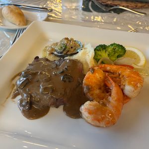 唯一の不満は、私が糖尿病で、早めに食べる必要があったのですが、最後に案内されたテーブルだったため、ビュッフェに行くのも最後になってしまったことです。また、糖分のないデザートもありませんでした。それ以外は、私が食べられた料理は美味しくて風味豊かでした。しかし、部屋に戻った後はほとんどの夜をトイレで過ごすことになりました。いくつかの料理が温度危険ゾーンに長く置かれていたのかもしれません。