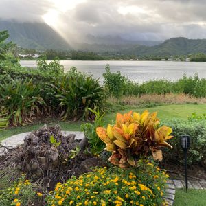 夕刻にワイキキの喧騒を離れ、迎えの車でカネオヘ湾を臨むプライベートガーデンに案内されました。