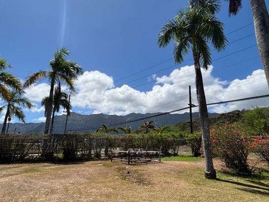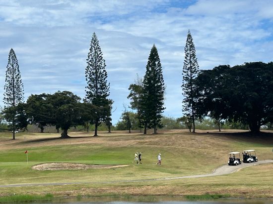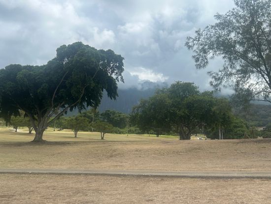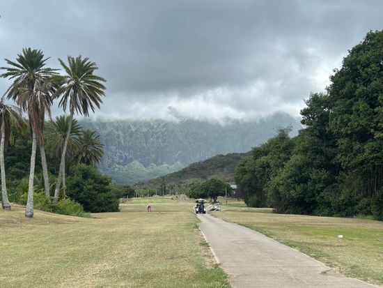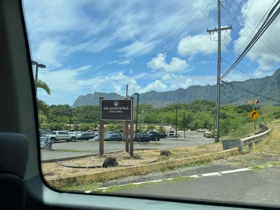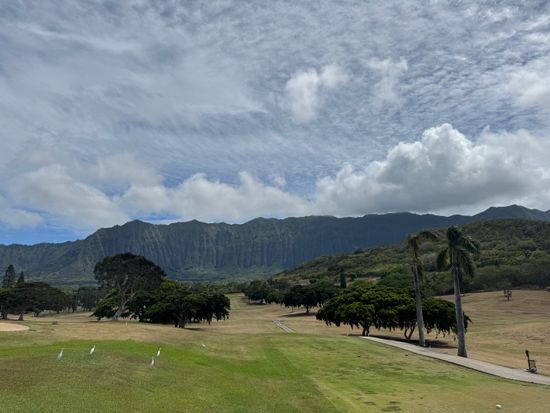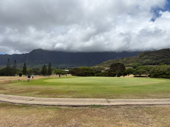 コオラウ山脈を眺めながらのラウンドはのんびり広々と日本とは違う感じで良かった。ナビもなく距離感も先のコースもわからなかったが、なんとか回れた。フェアウェイも草が生えてたり、芝生もはげてたり,バンカーも硬く・・・ではあったが、ローカル感がよし。