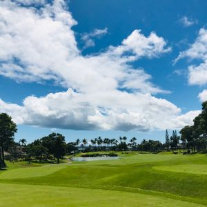 ハワイで初めてのゴルフでしたが、ホテルからの送迎やチェックインのサポートなど、安心してプレー出来る環境を整えて頂きました。6月中旬の当日は快晴で、気温も高かったと思いますが、風が通ると涼しく、18ホール通して、快適にラウンド出来ました。