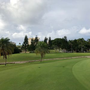 親父と2サムで回りました。初めての海外ゴルフだったので、レンタルクラブ、レンタルシューズでラウンドしました。好きな方はクラブを持参されると思いますが、滞在中に1日ラウンドするだけなら十分な気がします。逆に2ラウンド以上の予定があるなら持っていった方がいいと思います。景色もキレイなコースでダイヤモンドヘッドが遠くに見えます。コースとしては、グリーンの整備が微妙ですが、カートの乗り入れは爽快で時間もかかりません。100前後のスコアでしたが、4時間かかりませんでした。ガイドさんに聞いたら午後の方が空いているそうです。