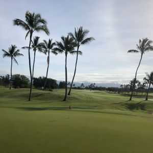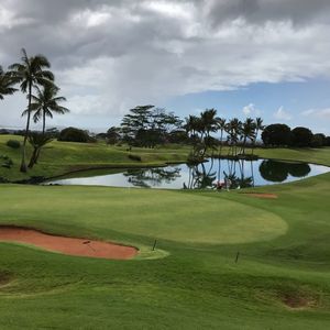 夫婦で回りました。男性ティーの、はるか前に女性ティーがあり、普段日本でのプレーではパーオンなどめったにできない家内でもパーオンできて大喜びでした。ベストスコアーだと喜んでましたが、ハワイで一番、女性に優しいコースかも知れません。ただし、高速高麗のグリーンにはてこずります。