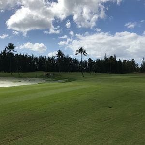 コオリナにも行きました、カポレイもプリンスもまわりました。ここはあまり期待せずだったのですが、海、ダイヤモンドヘッドが見えてあまりにも綺麗でした!!コースは平坦で初心者向き。ただ、後ろの組(日本人夫婦)があまりにもあおりゴルフをするので全然楽しめず、9ホールでやめました。だいたい、ここまで来てせっかくの景色を楽しみ、写真を撮ったりできないのもつまらない。9ホール捨ててゆっくりビールを飲み、景色を楽しんだことはよい選択だったと思っています。難を言えば、クラブハウスがあまりにシャビーで、ハチのロゴグッズもいまひとつ。そこが建て直されれば、ハワイで最高のコースではないかと思います。イチオシです。