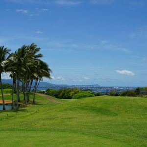 5月の連休中、両親と妻に9才の娘、計5名で参加しました。(2名は見学者)ワイキキからの移動時間は40分と言っていましたが、思ったより早く着きました。住宅街の奥に位置しているコースのクラブハウスは豪華とは言えませんが、地元色があって良い感じ。説明にあるよう高台にあるので真珠湾とダイヤモンドヘッドの眺めは見事です。その分、風が強かったですね。このコースはお天気次第だと思います。OBゾーンもほとんどなくフリーに打てますし、料金にも満足しています。お世話さまでした。
