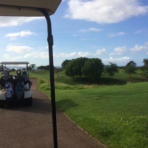 リムジンで送迎してくれました。景色も綺麗でコースも広くて綺麗で最高でした!もちろんスルーなので後半暑さもあってバテました。ランチは売店でサンドイッチを買うことが出来ました。