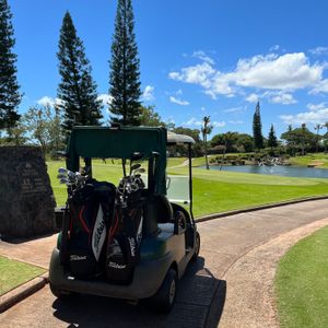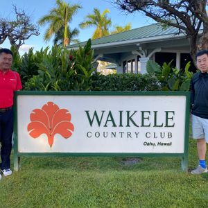 ワイケレカントリークラブで夫婦でゴルフを楽しみました。送迎付きはとても楽チン。宿泊先のホテルまで朝時間通りに来られ、ワイキキから約30分。ドライバーさんがゴルフ場に着くなり全て手続きして下さるので私たちがするのはサインのみ。(レンタルクラブ一式はその間に既にカートに積み込まれていました。)ゴルフシューズとグローブ、ボールは持参。ロッカールームはありましたが、鍵が締まらない不安があったので不使用。カートバックにゴルフに必要なもののみ持参するのが良いと思います。カートに氷の入ったボックスが付いているのでペットボトルは2〜3本冷やせるので持参しましょう。スループレイで時々待ち時間が発生するのですが、持参したおにぎりやサンドイッチがあると待ち時間も有効に過ごせます。スナックやドリンクを載せたスタッフさんのカートが時々回ってくるので、必要なら合図してラウンド中に購入出来ます。海が見えたりやヤシの木が風に揺れたり、池の噴水を見ながらフェアウェイをカートで移動出来るのでリゾート感を満喫できます。赤土のバンカーは深いところが多いです。グリーンもポテトチップスのようで乗っても簡単では無かったです。でも、コースメインテナンスもきちんとされていて最高でした。13:30のピックアップ予定でしたが13:00頃終わったのでクラブハウス内のショップで買い物したかったのですが、既にお迎えに来て下さっていて、トイレに行く時間くらいしか無くクラブハウス前で記念写真も撮りたかったのですがそれもままならず残念でした。