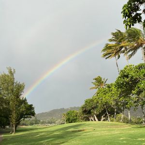 オアフのホテル街からそれほど遠くなく静かな環境でゴルフが楽しめます。今回は2サムで廻ったのですがゆったりと楽しく廻れました。適度に配置された池周辺はゴルフ中ですが良い撮影スポットでした。朝日と虹が印象的でした。