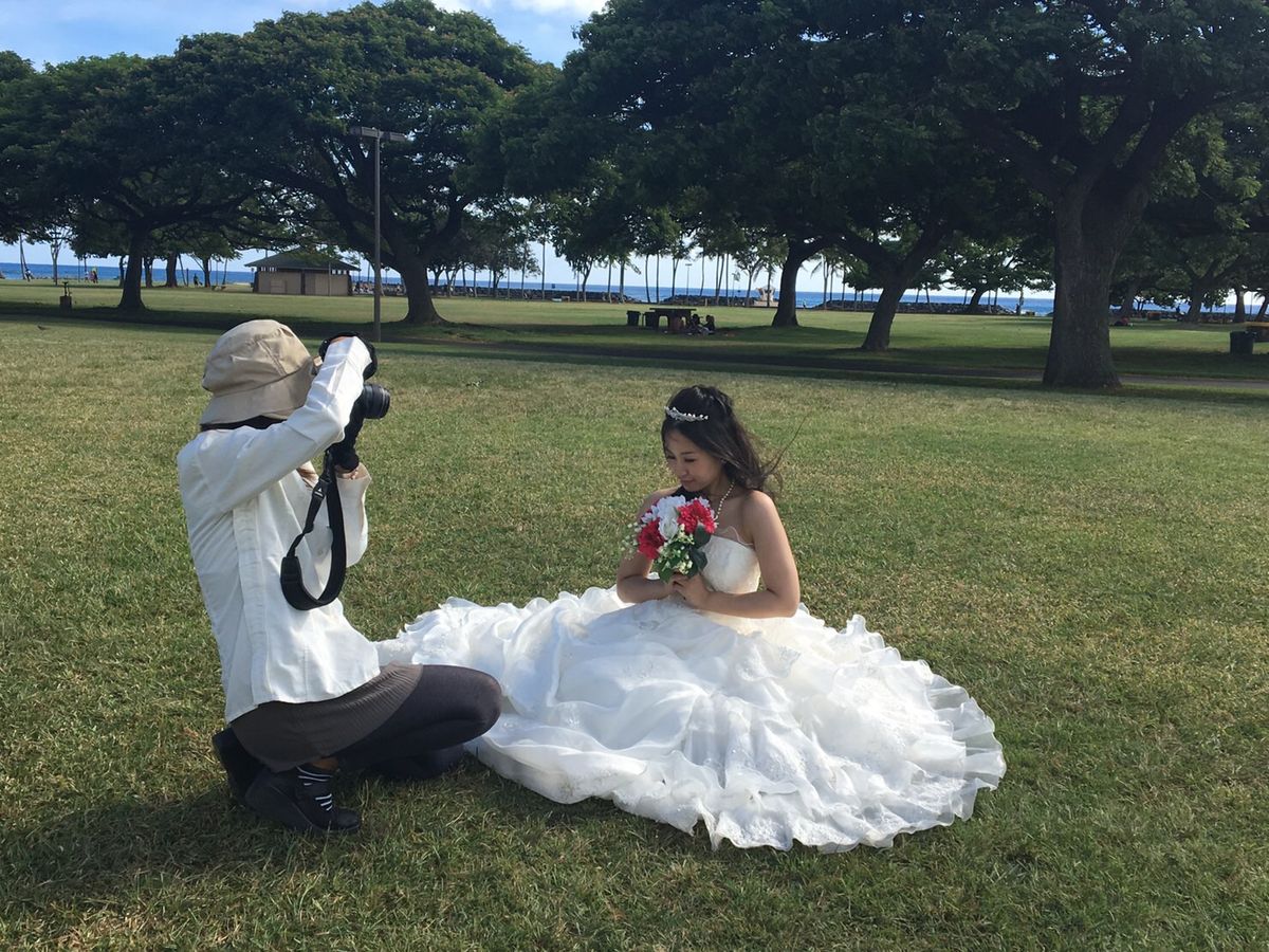 新婚旅行の記念で、頼みました!!ビーチでとるだけの方は多いですが、ワイキキ街中での撮影があったので、こちらで頼みました!!アテンドさんとカメラマンさんは楽しい方で、自然な表情で撮影が出来ました!アドバイスもくれるし、こちらの希望も聞いてくれて、とてもいい思い出になりました。ですが、ヘッドパーツとブーケはどれも使い古した感じがあったので、こだわりがある方は日本から持っていく方がいいと思います!!受付からヘアメイクまで日本人スタッフなので安心は出来ましたが、ヘアメイクの質が残念でした。