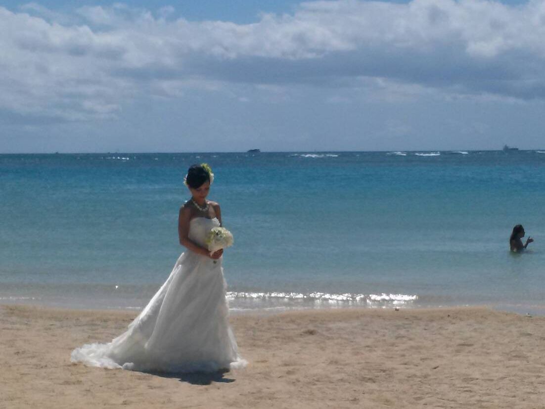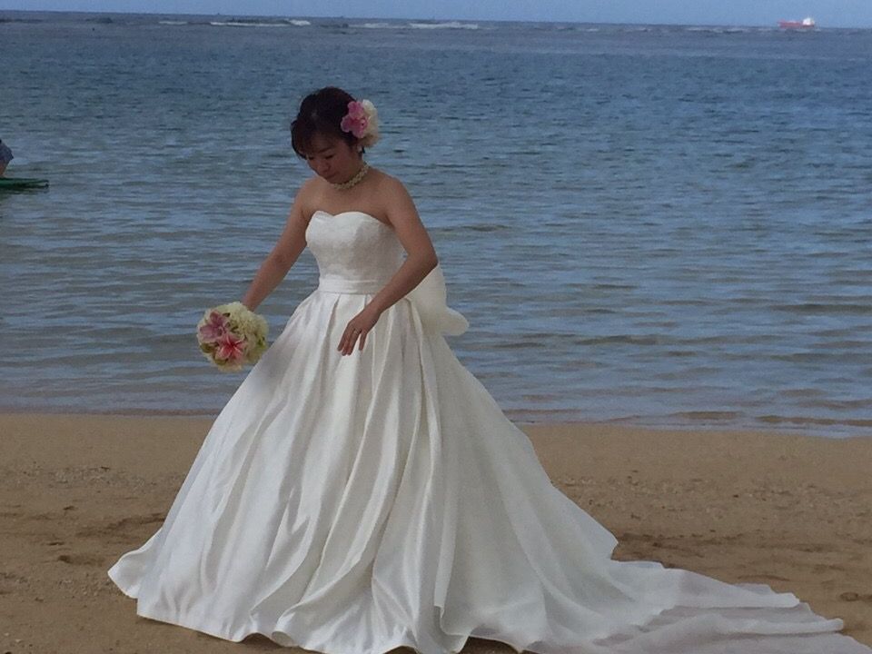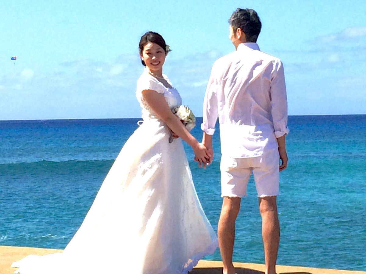 日本で式を挙げ、ドレスや和装の写真も撮りましたが、ハワイのビーチでの写真も記念に撮りたいと思い、申し込みました。