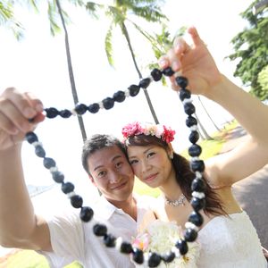 五月に結婚しました。今回は三番目の妹の結婚式参加のため、家族旅行&新婚旅行で初めてハワイに来ました。日本では体験できない青い海をバックにしたビーチフォトで大感激でした。当日はお天気が悪く突然の雨が降ったりしましたが、さすがはハワイ。すぐに青空が出てきて思い出に残るウエディングフォトを撮っていただくことができました。帰国後、届いたDVDもバックミュージックつきで、とても素敵でした。