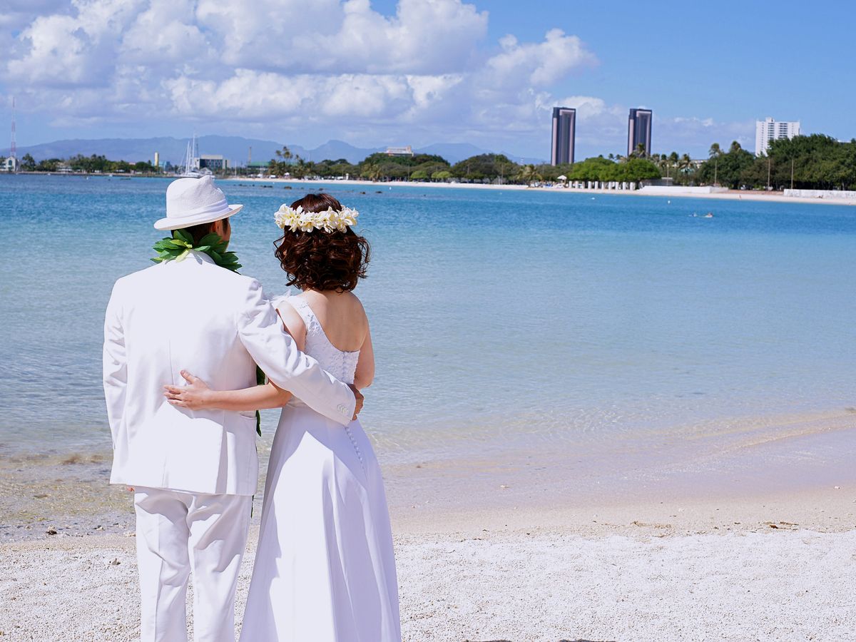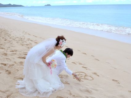結婚記念日に合わせてのハワイ旅行でビーチフォトを申し込みました。