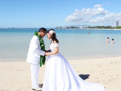メールだけの対応という事で少し不安な気持ちはありましたが当日伺うと手慣れた感じでスタッフの方も優しく親切だしドレスも満足いくものを着れたしメイクの仕上げも自分でやらせてくれたので良かったです。私たち日本で式を挙げていません。今回私たち夫婦と子供同伴の挙式でしたがとくに何の問題なく挙げられましたビーチフォトも暑かったけど素敵な写真を撮っていただけました。日本でこのような挙式&写真を撮ったら絶対に高いけどこちらなら新婚旅行&挙式で考えたらとてもお得だと思いますので是非友達にもおすすめしたいです。サユズミのみなさん1日ありがとうございましたとても良い記念になりました。