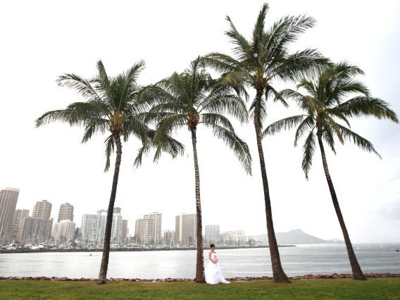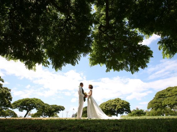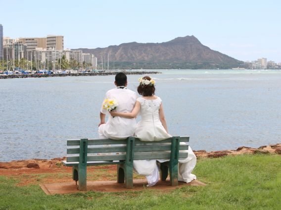 新婚旅行のハワイでは是非ドレスを着て写真撮影したいと思い、