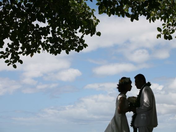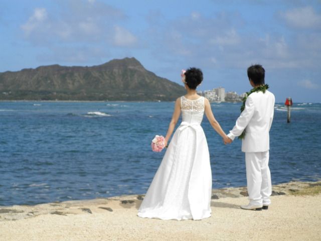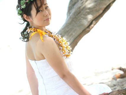 私達はハワイ在住です。家族や友達は日本なので、こちらで入籍した日に写真だけ残そうということでビーチフォトに参加しました。スタッフの方々、皆さんプロ意識が高く、とても手際も良く丁寧で親切に対応していただき、最高の思い出ができました。そして、普段全くメーク等には縁のない私を短時間で大変身させ、撮影もとっても楽しく、思い出に残る素敵な写真を撮っていただきました。日本の家族もとても喜んでいます。本当にどうもありがとうございました。友達等にも機会があったら、ぜひお勧めしたいです。