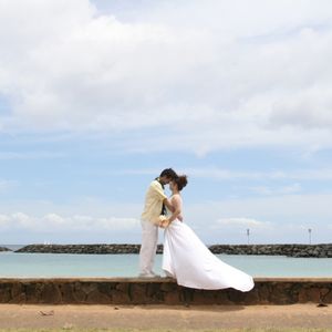 結婚披露宴をしてから3年がたちました。奥さんは披露宴の時に体験できなかった髪型やドレス姿で、青い空の下もう一度写真を撮りたいと考えていたらしく、今回のハワイ旅行で決行することになりました。決して安価とは言えませんが、スタッフの対応もとてもよく、夫婦での撮影は想像以上に楽しくて、とびっきりの笑顔に出会えますよ。