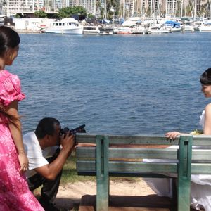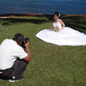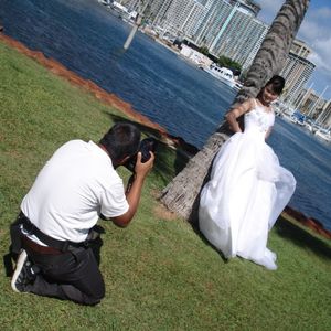 鳥の餌をまいて、一気に鳥が集まってきて、それをびっくりさせて、飛び立つ瞬間に撮影するなど、カメラマンの外人さんのアイデアが素晴らしかった!!いろんなポーズを提案してくれたり、うまく写る微妙な角度の指示をしてくれたので、良い写真に出来ました!こちらの希望も何でも聞いてくれました!CD-RやDVDのパッケージも撮った写真を使ってくれて、一生の思い出になりました。しかし、リムジン$200ドルは、やや高いような・・・。