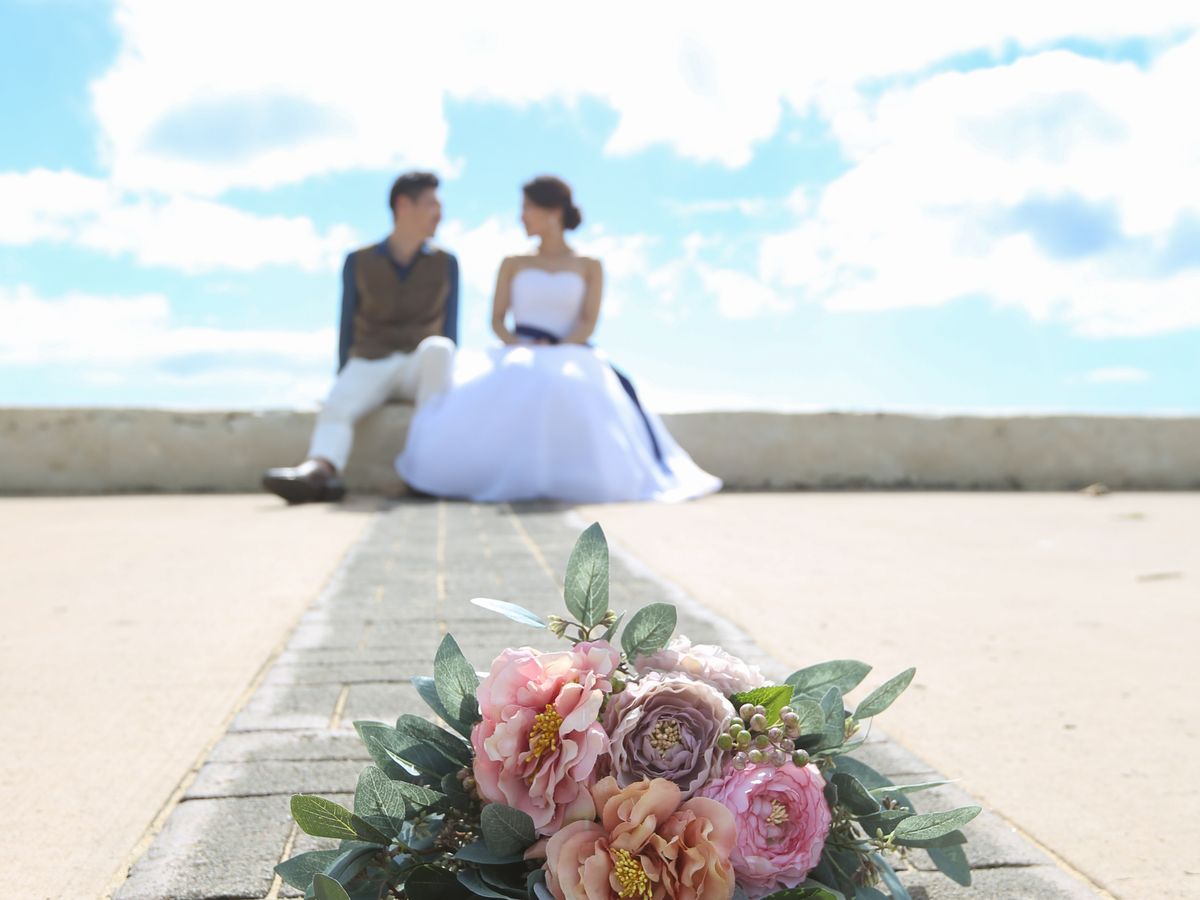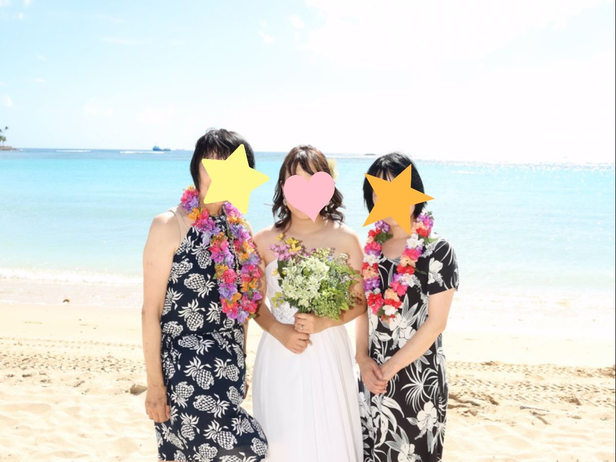 新婚旅行で初めてハワイを訪れた記念にと、ウェディングフォトプランを検討していたところ、こちらのプランを見つけ予約しました。サロンに到着するとすぐに撮影の流れの説明があり、その後ドレスとブーケ選び、ヘアメイクと進みます。ドレスは追加料金無しで好きなものを選べました。スタッフの方も皆さん笑顔がステキでどういったイメージが良いかなど丁寧に聴いてくださり、希望に近いドレスを次々と見せて下さいました。試着は3着まで可能です。選んで頂いたドレスに一目惚れして1着目で決まりましたが、どのドレスも本当にとても素敵でした。またブーケもラウンドやクラッチなど種類豊富で、選ぶのが楽しかったです。ヘアメイクさんもとても気さくな方で好みの色やヘアスタイルを確認しながらあっという間に支度が終わりました。選んだブーケに合わせて髪飾りも付けて下さり、自分が想像していた以上の仕上がりでとても嬉しかったです。 ビーチでの撮影も青い空と海が目の前に広がり素敵な写真をたくさん撮って頂きました。カメラマンさんもアテンドさんも明るく親しみやすい方たちでリラックスできました。持って行った携帯でも沢山撮って頂いたので、家族にすぐ送ることができました。新婚旅行で素晴らしい思い出になりました。こちらでお願いして本当によかったです。どうもありがとうございました。