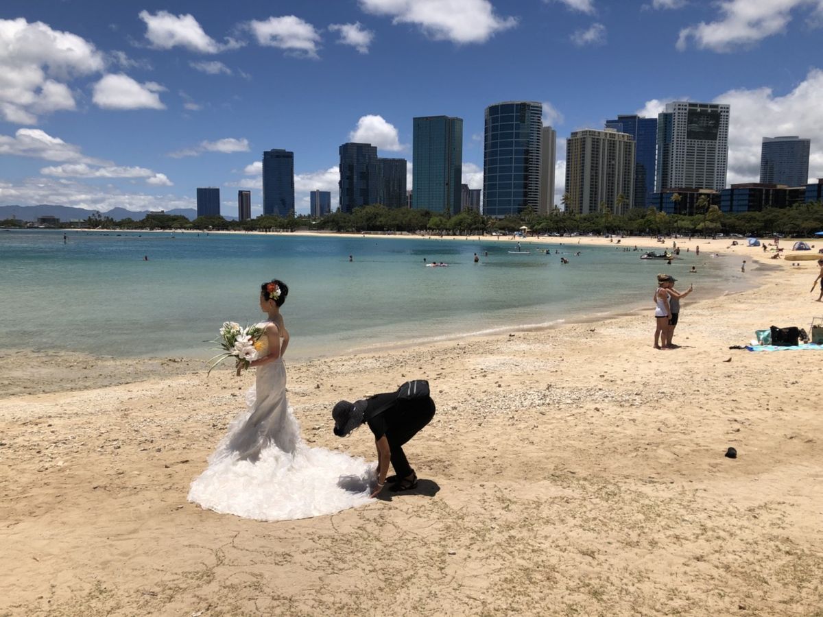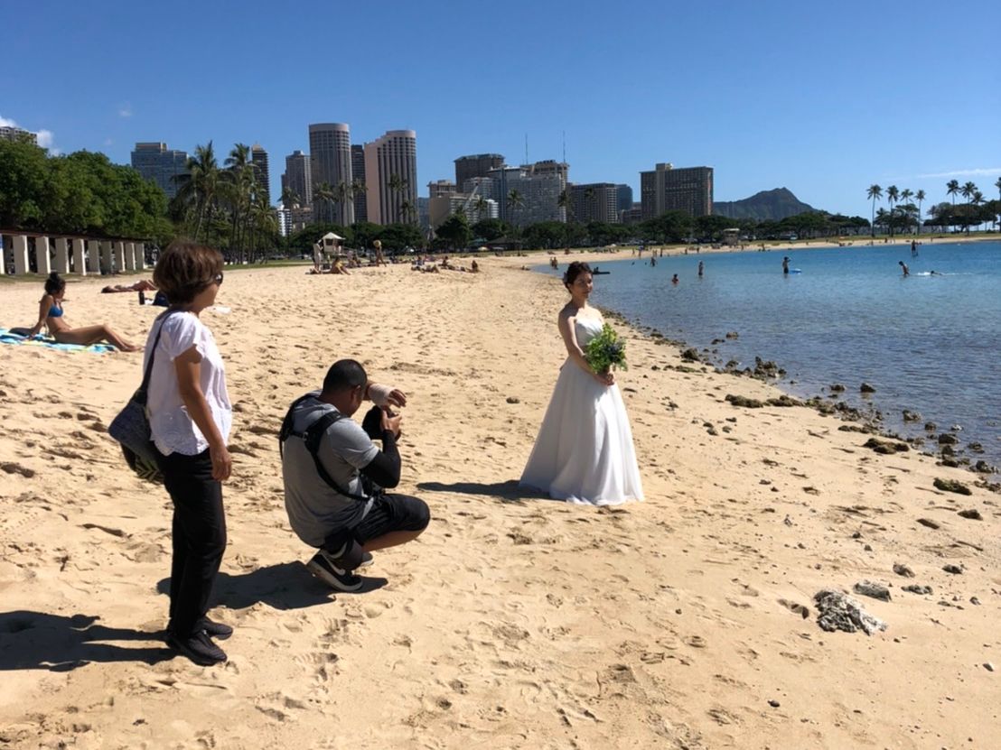 新婚旅行でハワイに行き、写真を撮ってもらいました。