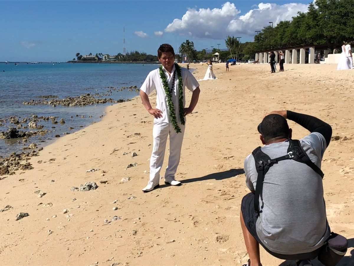 ビーチに移動したら他にも撮影しているカップルがたくさんいましたが、合間を縫いうまく撮ってくれます。ビーチ撮影も日本人のアテンドさんがフォローしてくれました。