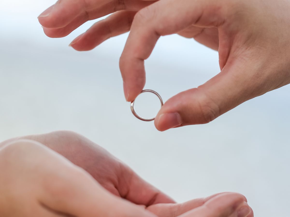青い空、青い海の前で牧師さんを目の前に、誓いの言葉を交わした瞬間、自分の中でグッとくるものがあり、感動と嬉しい感情が溢れて出ちゃいました。