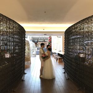 当日は残念ながら雨でしたが、カメラマンさんがとっても優しい方で、色々なところで撮ってもらえて最高に幸せでした。時には、ホテル内のインテリアを使って、アートのような写真に仕上がっていたのも、流石ー!っと感心(^^)カメラマンさんは現地の方でしたが、簡単な英語とお人柄で無理なく撮影が終了しました。本当に皆さんに感謝です。