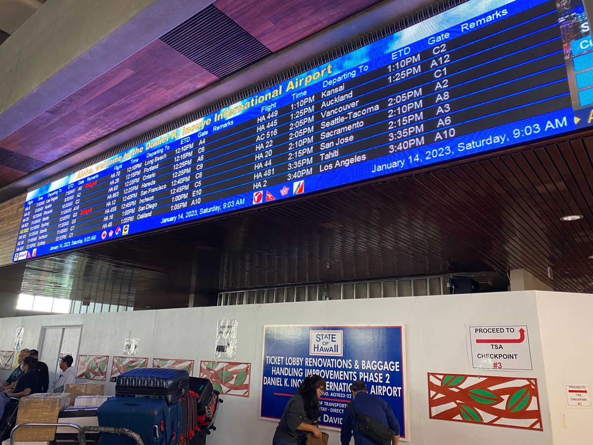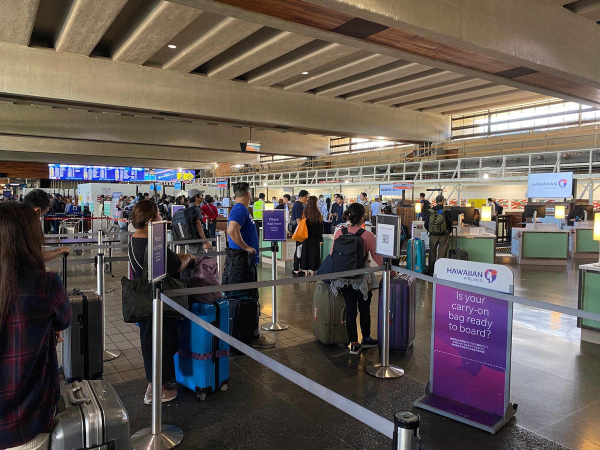 ホノルルからのフライト3時間前くらいにピックアップされ、45分程度で空港に到着します。ヒルトンハワイアンビレッジの場合、最初にピックアップされ、二、三箇所のホテルで他の方をピックアップしてから空港となりますが、最初のホテルがゆえに時間とおりに迎えがくるので安心ですね。